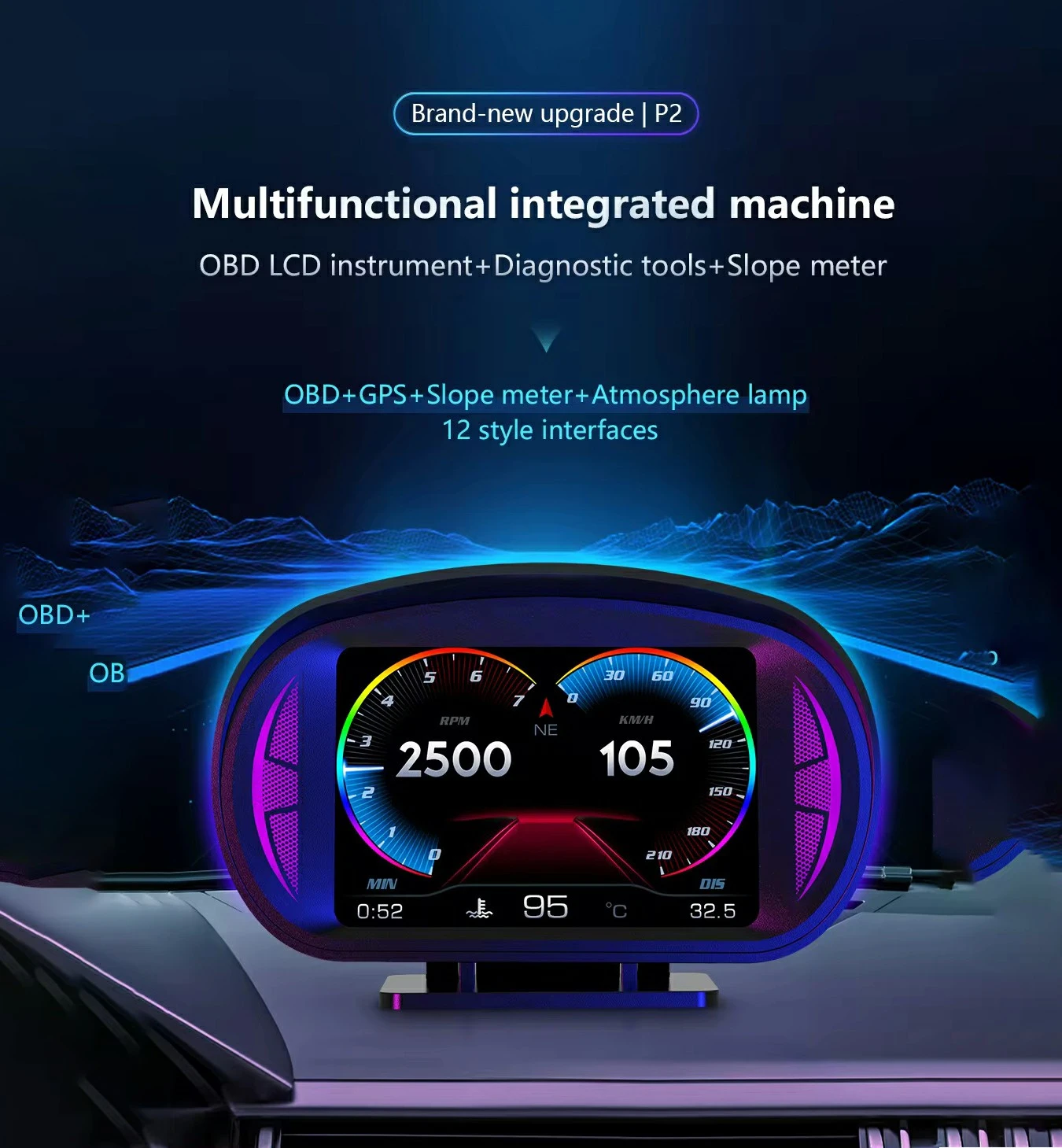 0P2 HEAD UP DISPLAY,OBD2 GAUGE DIAGNOSTIC TOOL OBHUD OBHUD-0P2 (SKU 30-126)