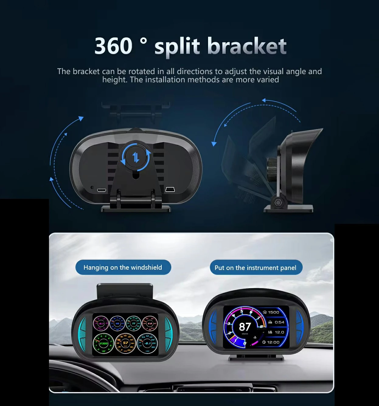 There are 2 install way: put on dashboard or stick on windshield. |