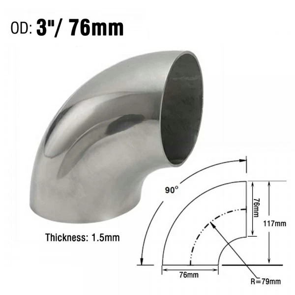 3"INCH 2MM STAINLESS STEEL 90DEGREE ELBOW PIPE TKBXGG30 SSP3.0 (SKU 36-237)