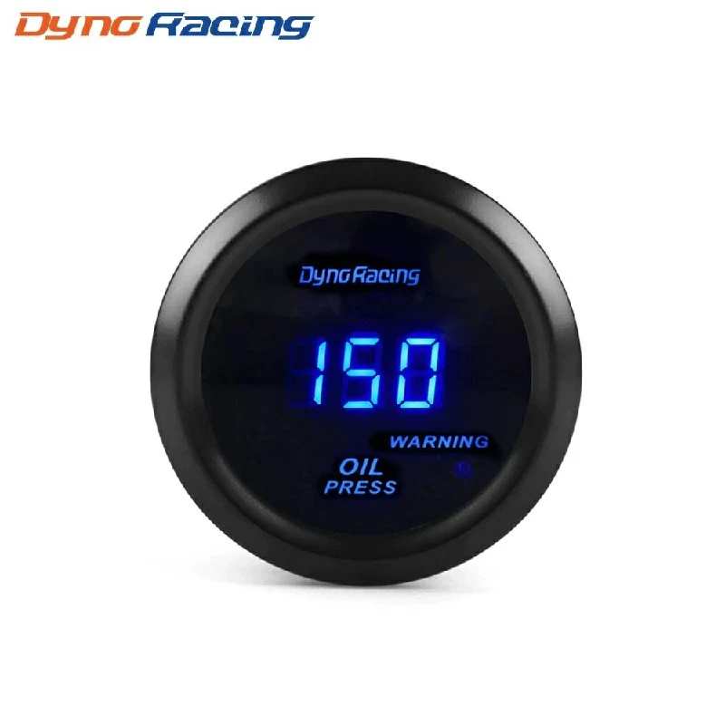 Dynoracing 2" 52MM Oil pressure gauge Digital 0-150PSI Oil press gauge Blue led with sensor Car meter Description: 2" 52mm LED Oil Pressure Press Gauge Body Color: black Condition: 100% Brand New Quantity:1 pc Lights color: Blue Power:12V DC Range:0-150PSI Waring Point:le18PSI With Instructions In English 52mm /2" Size Gauge Meter Fitment:All 12Volt Car Package includes: