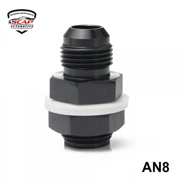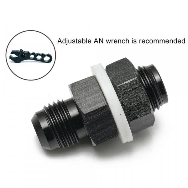 Black AN8 Flare Fuel Cell Bulkhead Fitting With Te-fl-on Washer |