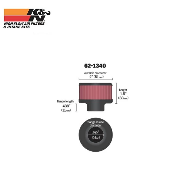 ENGINE BREATHER (CRANKCASE) FILTER K&N KNN-62-1340 (33-278) SPECIFICATIONS