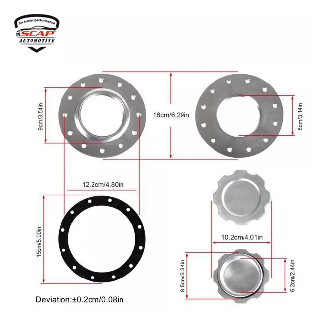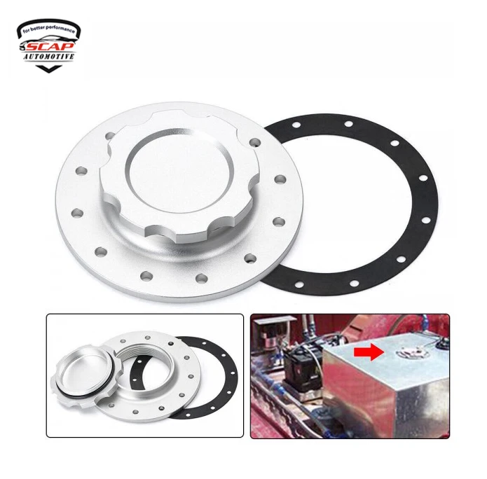 UNIVERSAL BILLET ALUMINUM 12 BOLT FUEL CELL CAP AA011G189 (SKU 35-019) Billet Fuel Cell Cap Assemblies are a unique answer to replacing your existing plastic fuel cell cap. |
