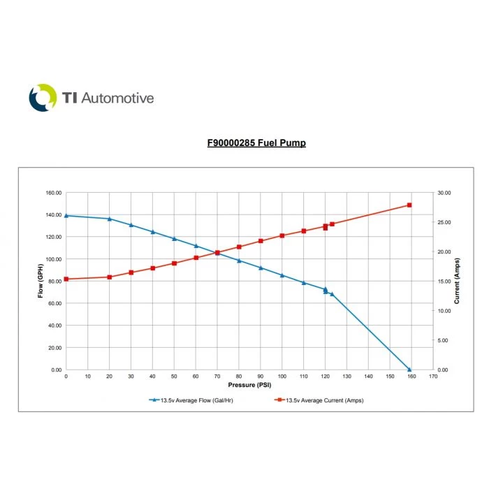 F90000285 HELLCAT 525LPH FUEL PUMP HAS THE HIGHEST OUTPUT IN-TANK FUEL PUMP ON THE MARKET TI Automotive F90000285 39/50 Fuel Pump Enjoy the highest output on today’s market with our new DCSS 39/50 fuel pump. Able to support an aggressive 700+ horsepower, with a super charger, this innovative dual pumping channel design delivers maximum pressure with superior fuel flow. Operating in both gas and E85, this fuel pump comes with a check valve to avoid system leak-down and extended cranking at start-up. This superior design results in improved hot fuel flow, as well as minimal noise, increasing efficiency by 20% over conventional pumps, delivering unparalleled performance F90000285 Flex Fuel HP Pump The innovative design of the DCSS 39/50 features a single impeller with two parallel rows of turbine blades. Designed for high performance engines exceeding 500hp. Fuel: GAS & E85