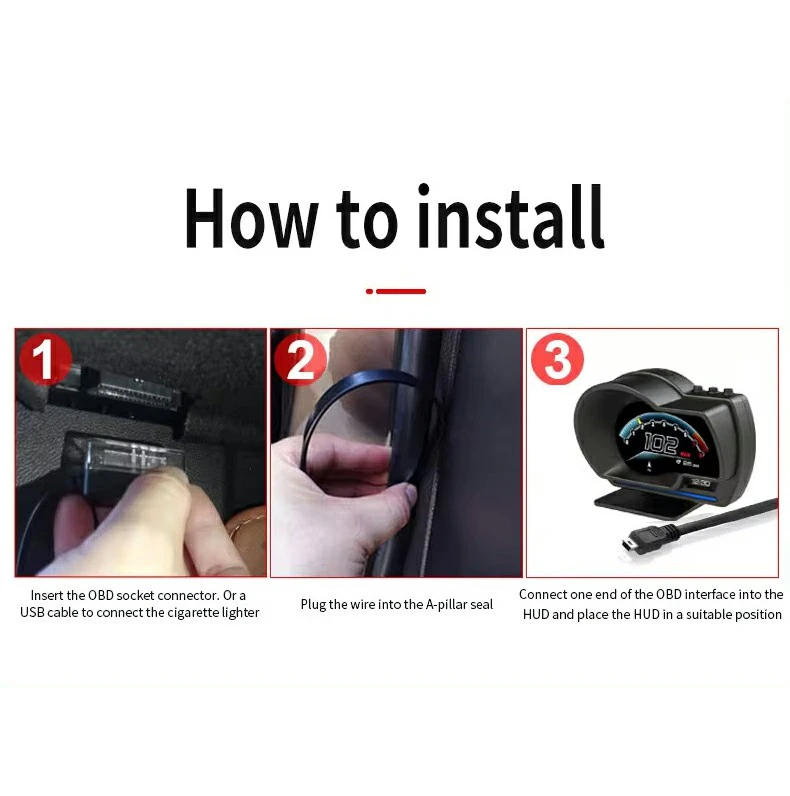 NEWEST VERSION HEAD UP DISPLAY ,WATER TEMP,OBD2/GPS GAUGE OBHUD OBHUD-0P6 (SKU 30-129) Resolution : 800*480 Function : Clock, water temperature, Voltage Alarm, Fuel Consumption, Fatigue Driving Alarm, Driving Time, Engine RPM, Speed Monitoring, Driving Distance, brake test, clear fault code Installation : OBD2, plug and play Car model : Universal 100% car HUD Function : Car Alarm+information Display
