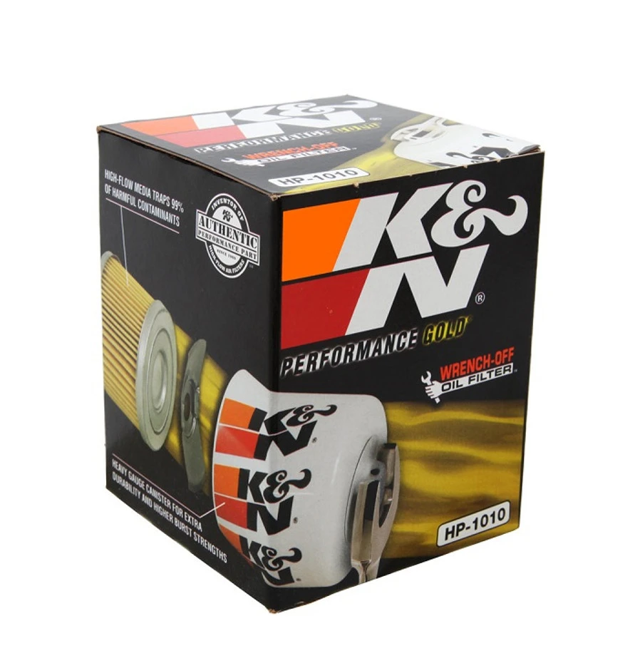 OIL FILTER PERFORMANCE GOLD K&N HP-1010 (SKU 43-234) K&N HP-1010 Oil FilterProduct Description K&N Oil Filter HP-1010 is constructed with a high flow design that helps to improve engine performance by reducing oil filter restriction. K&N oil filter HP-1010 provides outstanding filtration and engine protection throughout its service life and is engineered to handle virtually all grades of synthetic, conventional and blended motor oils. Originally developed for demanding race applications, K&N's Premium Wrench-Off Oil Filter HP-1010 has become a favorite among consumers for its durability and easy removal. Most of automotive and marine oil filters come with a 1 inch nut welded to the top of the canister so it can be easily wrenched-off with a standard tool. To satisfy the demands of racers, HP-1010 oil filter has many features over and above the requirements of most vehicles. K&N HP-1010 oil filter uses thicker canister walls for extra strength and durability which reduces the risk of damage from loose rocks and debris. The drilled hole on the nut provides for safety wire attachment. K&N HP-1010 oil filter also uses a resin impregnated cellulose filter media. This allows for higher flow rates while providing outstanding filtration. |