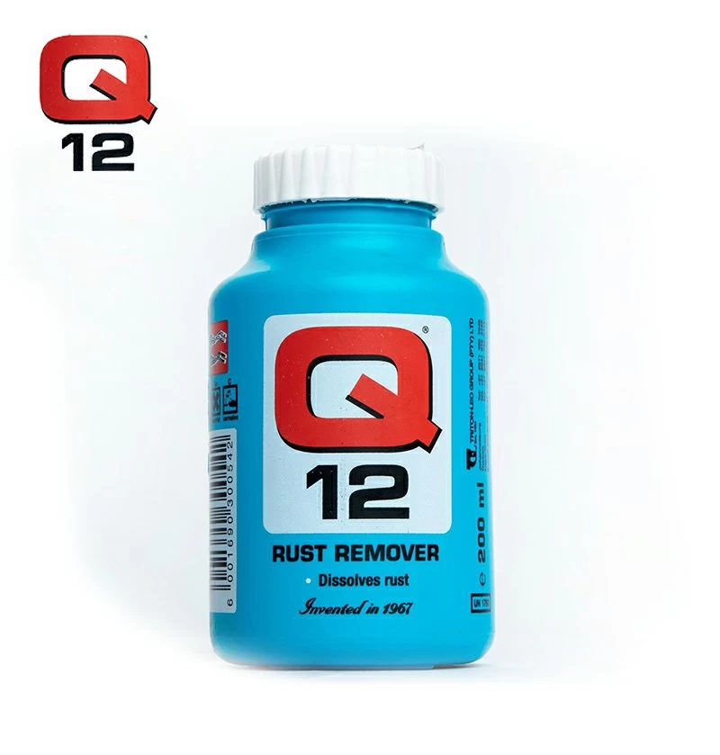 RUST REMOVER(DISSOLVES RUST) Q12 Q12 Removes the worst rust in minutes, in the garage, home, workshop, or on the farm. Q12 removes the worst rust in minutes, with no more sanding; just apply and wait for it to work. Use Q12 in the garage, home, workshop, or on the farm for any rusty tools, implements, and fittings.