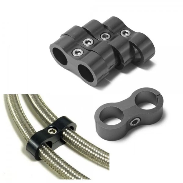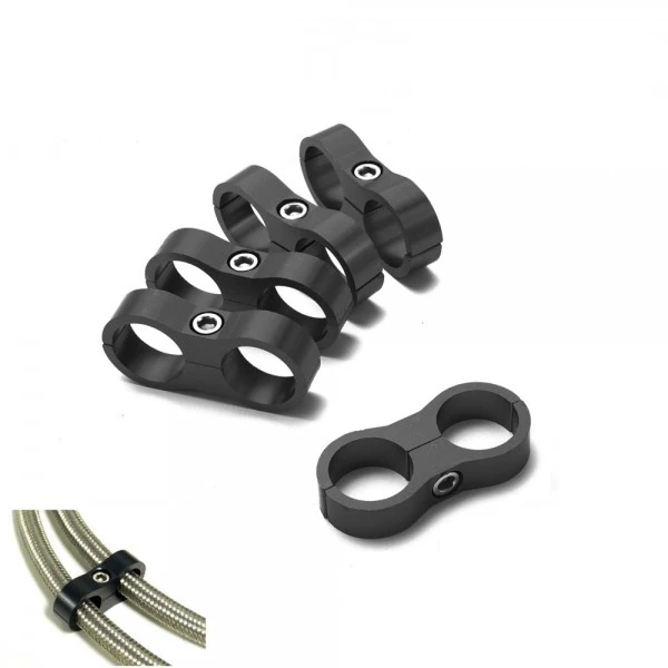 UNIVERSAL AN12 BILLET OIL/FUEL/WATER HOSE SEPARATOR DIVIDER CLAMP YGJ2KAN12BK (SKU 31-213) This separator is machined from high quality CNC billet aluminium and is then anodized for a quality finish and durability.This separator is designed to be used with oil, fuel, water hoses to keep them organized and away from moving engine parts. |